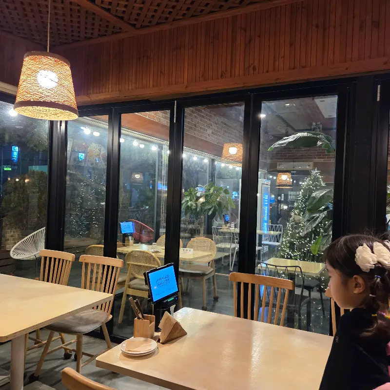 차가 슝슝 달려 도착한 암파스타레. 밤에 지나가면서 봤을 때는 조명 때문에 엄청 예뻐 보였는데, 낮에 보니까 또 다른 매력이 있더라. 따뜻한 우드톤 인테리어에 은은하게 들어오는 햇살이 진짜… 딱 내가 좋아하는 분위기였어. 마치 비밀 정원에 들어온 듯한 느낌이랄까? 곳곳에 놓인 아기자기한 소품들도 눈길을 사로잡았어. 특히 다락방처럼 꾸며진 공간은 아이들이 진짜 좋아할 것 같더라. 다음에는 조카 데리고 꼭 다시 와야겠다고 다짐했지.