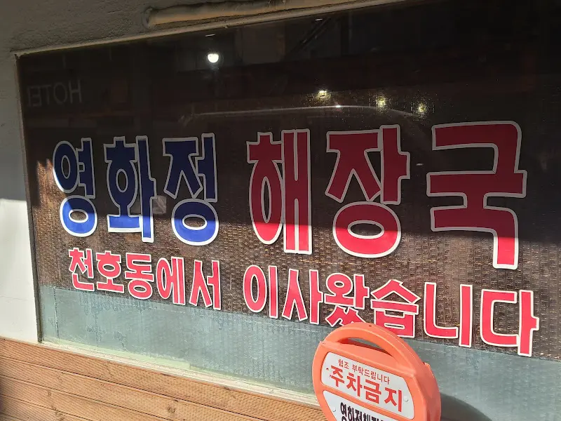 어릴 적, 숙취로 끙끙 앓던 아버지의 손에 이끌려 방문했던 해장국집의 기억은 뇌리에 강렬하게 남아있다. 그 강렬한 기억을 되살려줄 곳이 있다는 정보를 입수, 실험정신을 발휘하여 길동역 인근에 위치한 해장국 전문점, “영화정 해장국”으로 향했다. 골목 안쪽에 자리 잡은 이곳은 간판부터가 예사롭지 않았다. 붉은색과 푸른색의 강렬한 대비가 시각피질을 자극하며 기대감을 증폭시켰다. 마치 오래된 영화 포스터를 보는 듯한 느낌이랄까.
