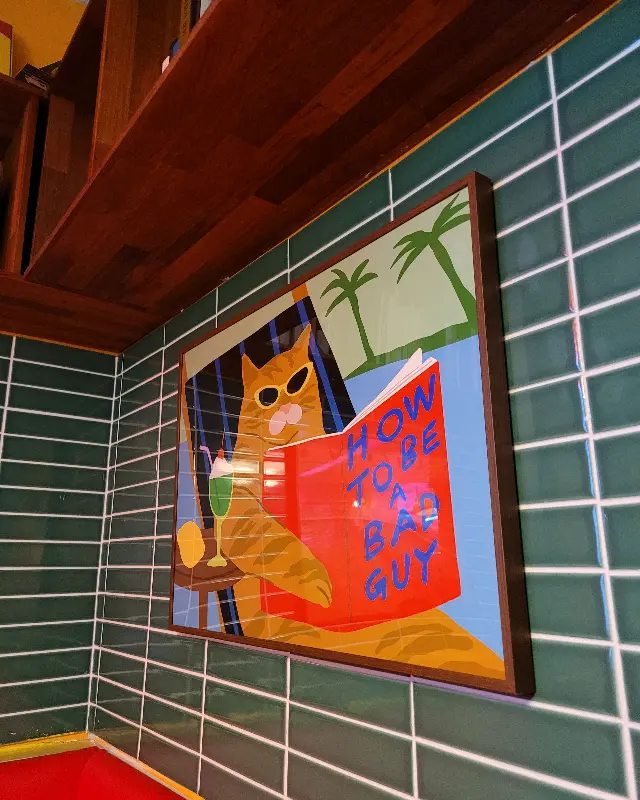 들어가자마자 눈에 띄는 건 힙한 인테리어! 벽에 걸린 그림들도 그렇고, 전체적으로 트렌디하면서도 편안한 분위기가 딱 내 스타일. 친구들이랑 와서 사진 찍기에도 좋을 것 같아. 테이블 간 간격도 좁지 않아서 좋았어.
