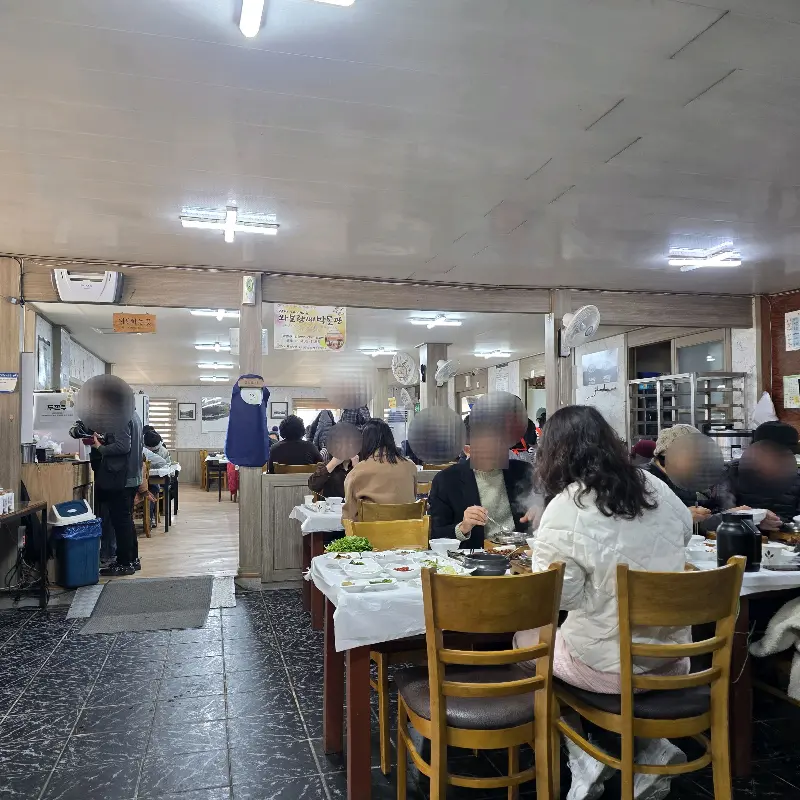 식당 안으로 들어서자, 넓고 깔끔한 홀이 펼쳐졌다. 테이블 간 간격도 넉넉해서 편안하게 식사를 즐길 수 있는 분위기였다. 이미 테이블 위에는 다양한 반찬들이 가지런히 놓여 있었다. 마치 잘 차려진 한정식 상차림을 보는 듯했다.