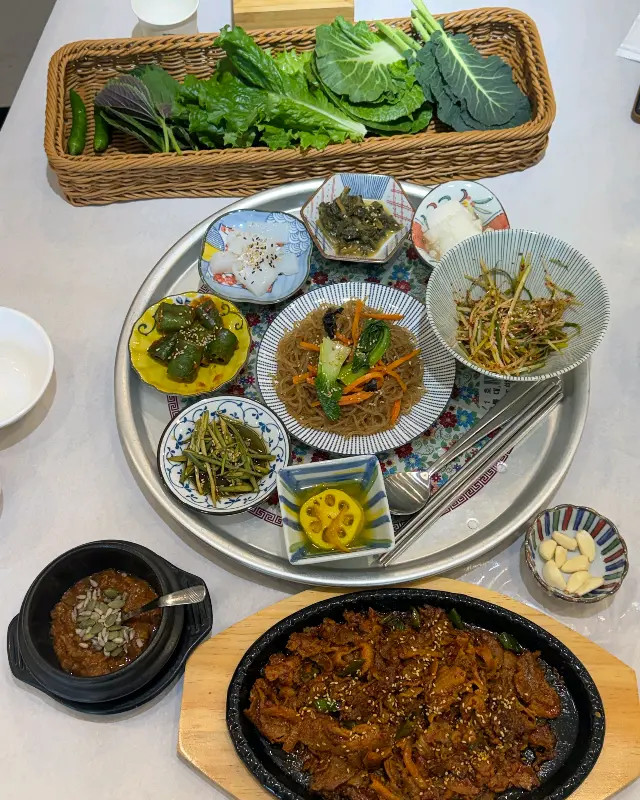 잊을 수 없는 맛: 불맛 가득한 제육볶음과 신선한 쌈의 조화