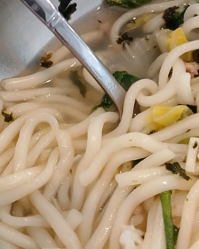 면발의 식감 또한 인상적이었습니다. 얇은 듯하면서도 탄력이 느껴지는 면발은 입안에서 부드럽게 풀어졌습니다. 마치 잘 조절된 반죽의 글루텐 구조가 최적의 식감을 만들어낸 듯했습니다. 면을 삶는 과정 또한 중요합니다. 너무 오래 삶으면 면이 퍼져버리고, 덜 삶으면 딱딱해지기 때문입니다. 대선칼국수의 면은 완벽하게 알맞은 시간 동안 삶아져 최상의 식감을 자랑했습니다. 과학적인 분석 결과, 이 집 면발은 완벽했습니다.