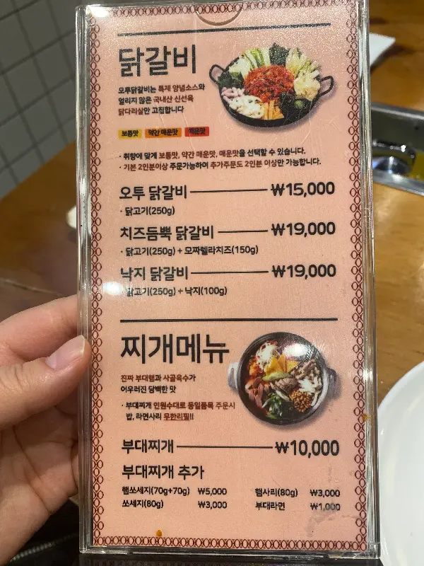 메뉴판 스캔 딱 마치고, 닭갈비에 치즈 추가!