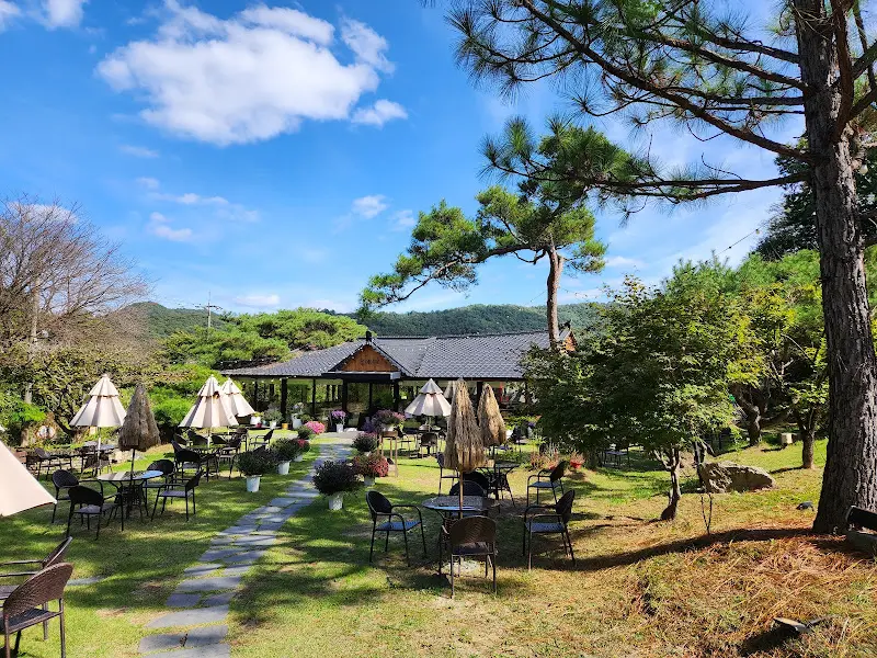 주차 공간은 넉넉했다. 카페 앞쪽으로도 공간이 있었지만, 안쪽으로 더 들어가니 넓은 공터가 나타났다. 주차 걱정 없이 편안하게 방문할 수 있다는 점이 마음에 들었다. 차에서 내려 카페 입구로 향하는 길, 정성스럽게 가꿔진 정원이 눈길을 사로잡았다. 형형색색의 꽃들이 피어 있었고, 작은 연못에는 물고기가 헤엄치고 있었다. 마치 잘 꾸며진 갤러리에 들어서는 듯한 느낌이었다.