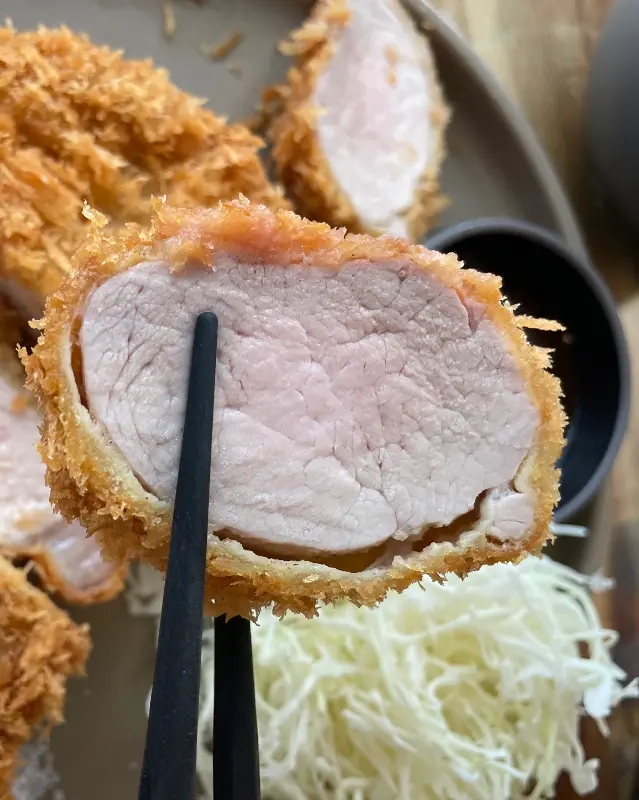 촉촉한 육즙이 살아있는 돈카츠 단면