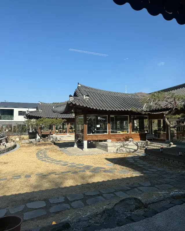 카페에 가까워질수록 기와지붕이 겹겹이 쌓인 아름다운 한옥의 자태가 눈에 들어왔다. 푸른 하늘 아래 고즈넉하게 자리 잡은 모습은 마치 시간을 거슬러 올라간 듯한 느낌을 주었다. 기대감을 가득 안고 안으로 들어서니, 은은한 나무 향과 따뜻한 조명이 마음을 편안하게 감쌌다.