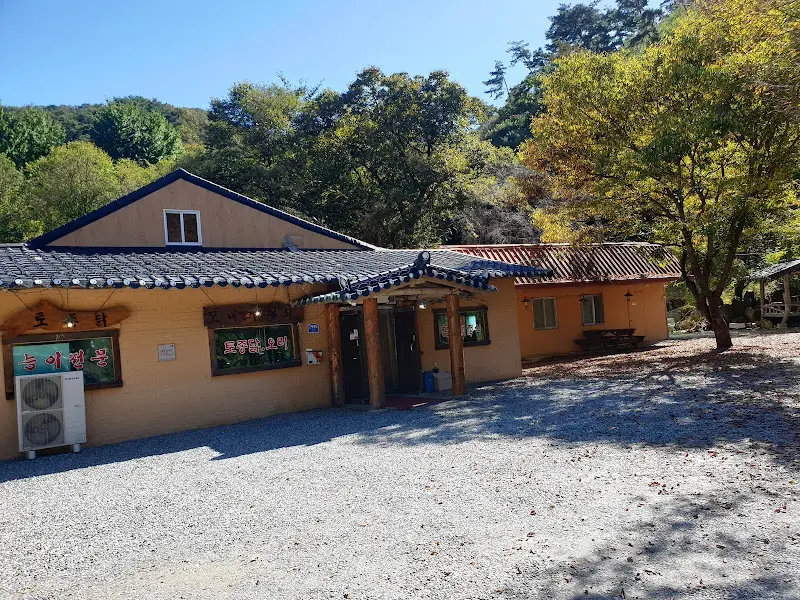 식당 앞에 다다르니, 넓은 주차장이 가장 먼저 눈에 들어왔다. 주차 공간이 넉넉하게 마련되어 있어 편안하게 차를 댈 수 있었다. 식당 건물은 시골 한옥을 개조한 듯한 정겨운 모습이었다. 낡은 기와지붕과 나무 기둥에서 세월의 흔적이 느껴졌고, 주변 풍경과 어우러져 고즈넉한 분위기를 자아냈다. 마치 어린 시절 할머니 댁에 놀러 온 듯한 푸근함이 느껴졌다.