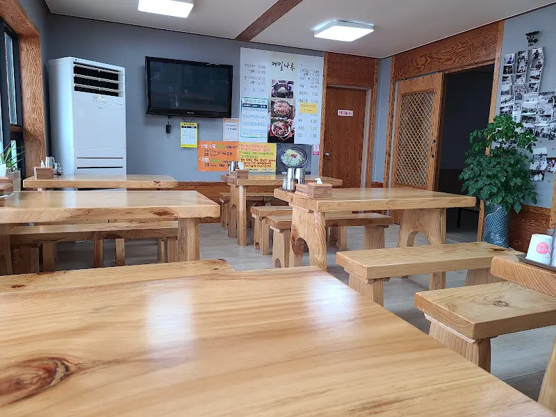 가게 문을 열고 들어서니, 나무 테이블과 의자가 쫙 놓여 있는 게, 깔끔하면서도 옛날 시골집 생각나는 분위기였어. 을 보니, 훤칠한 나무 테이블들이 정갈하게 놓여 있는 모습이 눈에 띄네. 점심시간이 조금 지난 시간이었는데도, 손님들이 꽤 있더라고. 다들 막국수 한 그릇씩 앞에 놓고 후루룩, 짭짭 소리 내면서 어찌나 맛있게 드시던지. 나도 모르게 침이 꼴깍 삼켜지더라.