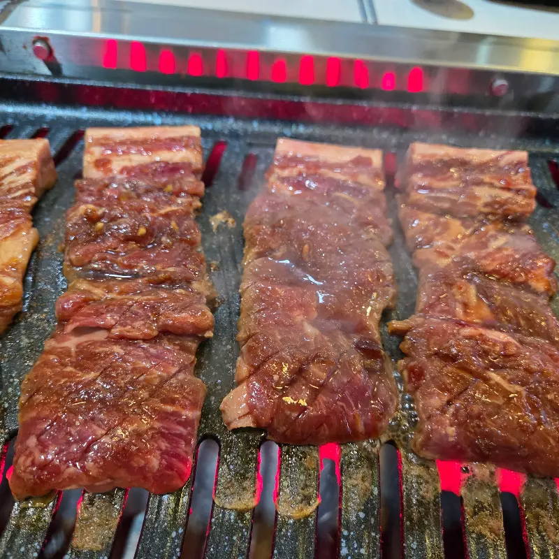 참, 어떤 분들은 고기가 얇다고 느낄 수도 있다는데, 저는 딱 먹기 좋은 두께였어요. 너무 두꺼우면 턱 아프잖아요? 딱 알맞게 얇아서 술술 넘어가더라구요. 그리고 고기 구워주는 서비스는 생갈비만 해당된다고 하니 참고하세요!