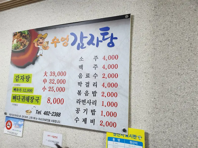수영감자탕은 늦은 시간까지 영업을 하는 덕분에, 저희처럼 늦게 도착하는 사람들도 편하게 식사를 할 수 있다는 장점이 있어요. 저렴한 가격에 푸짐한 양, 그리고 친절한 사장님까지, 모든 것이 완벽한 곳이었죠.
