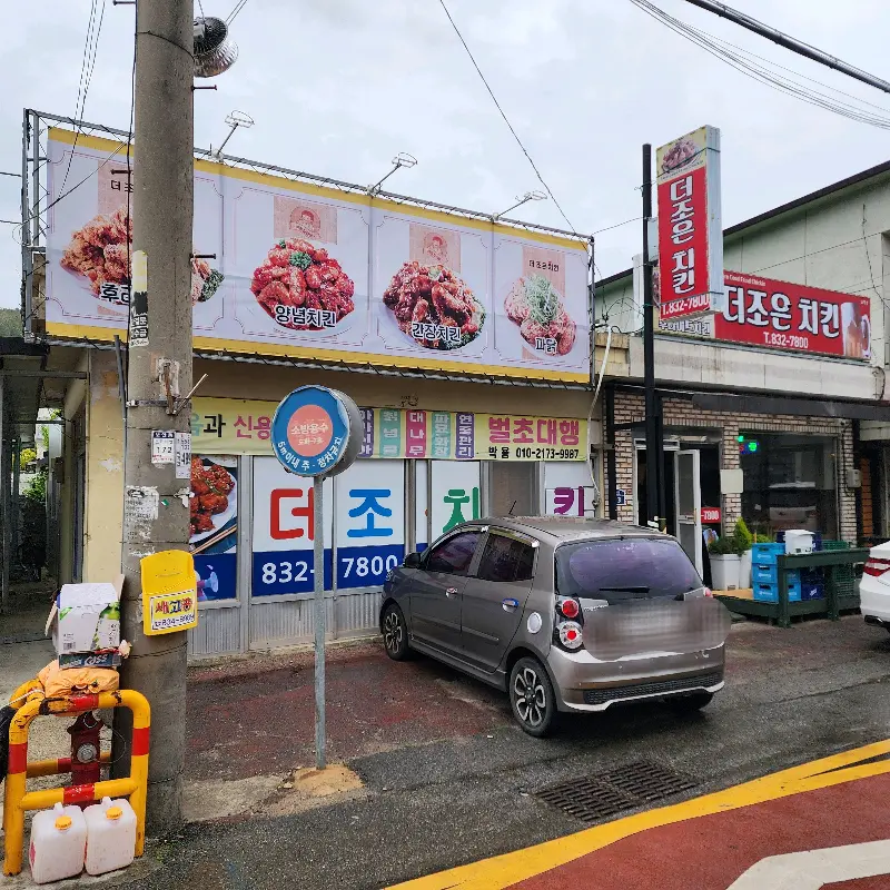 드디어 도착! 멀리서부터 보이는 간판이 왠지 모르게 정겹다. 커다란 글씨로 쓰여진 ‘더조은치킨’이라는 상호와, 그 옆에 귀여운 닭 캐릭터 그림이 촌스러우면서도 매력적이다. 가게 앞에 차를 대고 내리니, 갓 튀긴 치킨 냄새가 코를 찌른다. 아… 이건 진짜 반칙인데.🤤