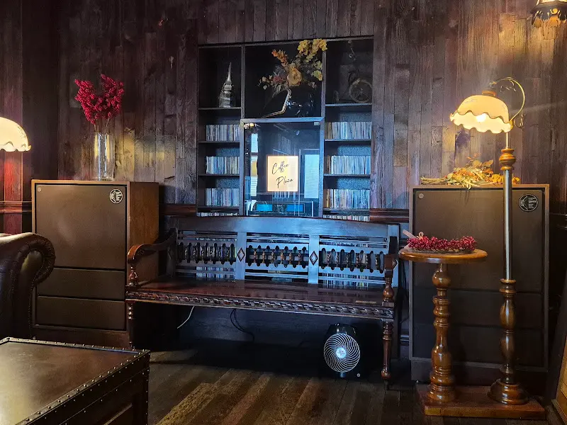문을 열고 들어선 순간, 예상했던 것보다 훨씬 더 깊고 아늑한 공간이 펼쳐졌다. 어둑한 조명 아래, 앤티크 가구들이 멋스럽게 배치되어 있었고, 벽면에는 책들이 가득 꽂혀 있었다. 마치 오래된 서재에 들어온 듯한 착각이 들었다. 진한 커피 향과 함께, 매킨토시 앰프에서 흘러나오는 탄노이 스피커의 부드러운 선율이 공간을 가득 채웠다. 붉은 꽃이 꽂힌 화병과 앤틱 스탠드가 따뜻한 느낌을 더했다. 묵직한 가죽 소파에 몸을 기대니, 세상 시름을 잊을 만큼 편안했다.