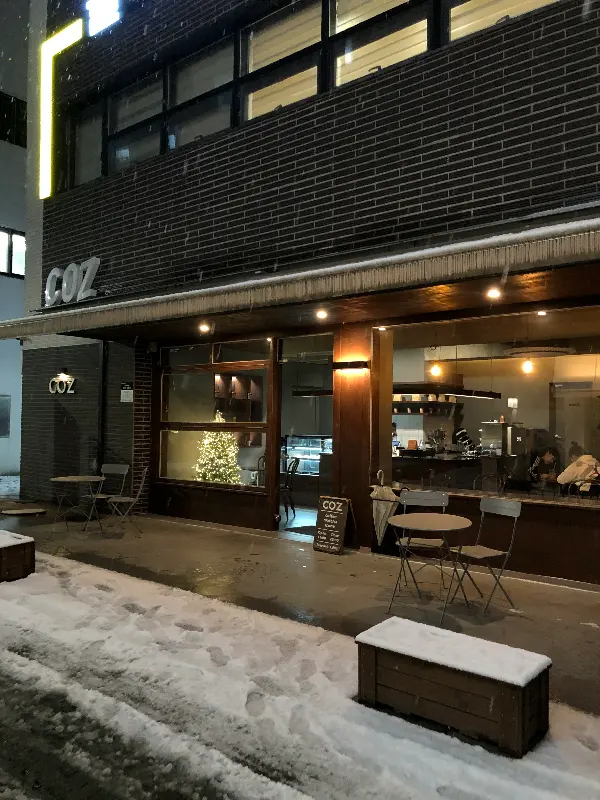 눈 내리는 날, 코즈의 따뜻한 외관이 더욱 포근하게 느껴진다.