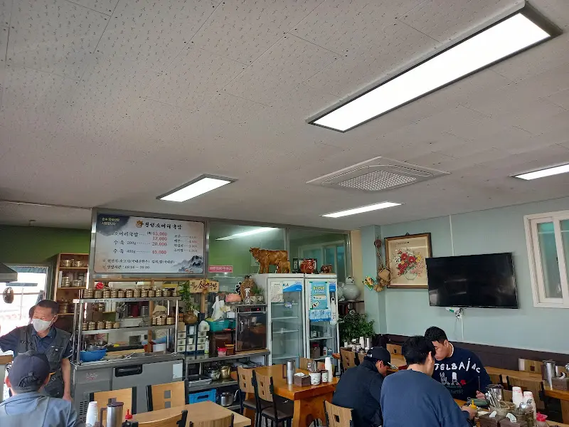 가게 안을 둘러보니, 테이블마다 뽀얀 국물의 소머리국밥을 앞에 두고 맛있게 식사하는 손님들로 가득했어. 벽에는 메뉴판과 함께 원산지 표시가 큼지막하게 붙어 있었는데, 국내산 한우와 쌀, 김치를 사용한다고 쓰여 있더라. 역시, 좋은 재료를 쓰는 집은 맛이 없을 수가 없지.