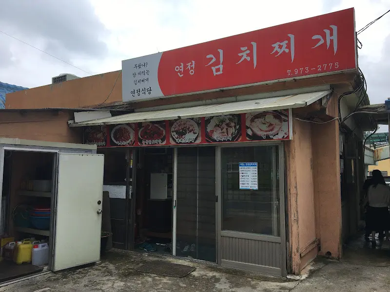 멀리서도 눈에 띄는 오렌지색 간판이 인상적인 “연정김치찌개”