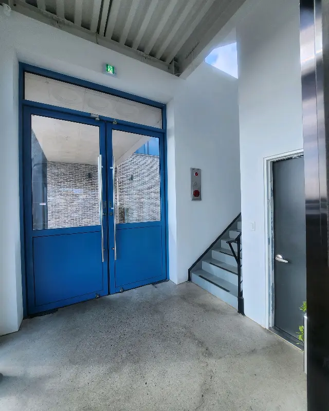 푸른색 문이 인상적인 워킹타우너 입구