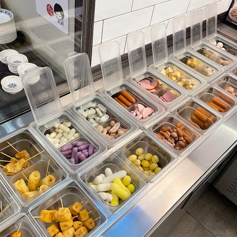푸주, 건두부, 팽이버섯, 새송이버섯, 배추, 청경채 등 기본적인 재료는 물론이고, 평소에 쉽게 접하기 힘든 팬더 분모자와 꽃 분모자까지 준비되어 있어 선택의 폭이 넓었다. 소시지 종류도 3가지 이상, 두부 종류도 다양해서 취향에 따라 고르는 재미가 쏠쏠했다. 게다가 재료들이 하나같이 신선하고 깨끗하게 관리되고 있는 점이 마음에 쏙 들었다. 자외선 살균 시스템까지 갖춰져 있다고 하니 더욱 믿음이 갔다. 마치 뷔페에 온 듯 풍성한 재료들을 보며 어떤 조합으로 마라탕을 끓여볼까 행복한 고민에 빠졌다.