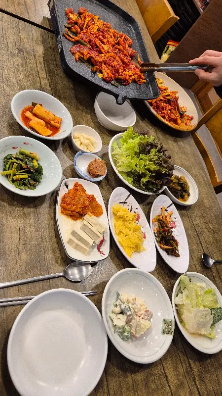 잘 익은 오리주물럭 한 점을 샐러리 장아찌와 함께 입에 넣으니, 그 맛은 가히 환상적이었다. 신선한 오리고기의 쫄깃한 식감과 매콤달콤한 양념이 어우러져 입 안 가득 행복을 선사했다. 샐러리 장아찌의 아삭한 식감과 향긋한 향은 오리의 느끼함을 잡아주어 완벽한 조화를 이루었다.