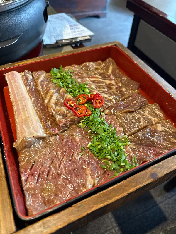 문을 열자, 은은한 나무 향과 함께 따뜻한 기운이 온몸을 감쌌다. 100년은 족히 넘었을 법한 구옥을 정성스레 리모델링한 공간은, 고즈넉하면서도 세련된 분위기를 자아냈다. 낡은 서까래와 현대적인 조명이 어우러져 만들어내는 묘한 조화는, 마치 과거와 현재가 공존하는 듯한 느낌을 선사했다. 테이블마다 놓인 작은 화로 위로는 숯불이 타닥타닥 소리를 내며, 곧 맛볼 갈비에 대한 기대를 한껏 부풀렸다.