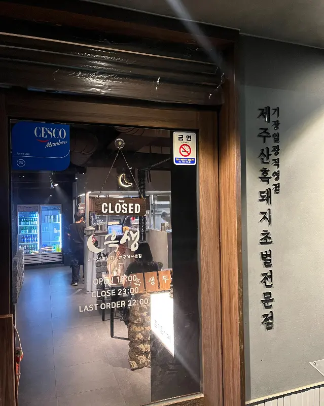 가게 입구부터 제주 느낌이 물씬 풍기는 “흑생”
