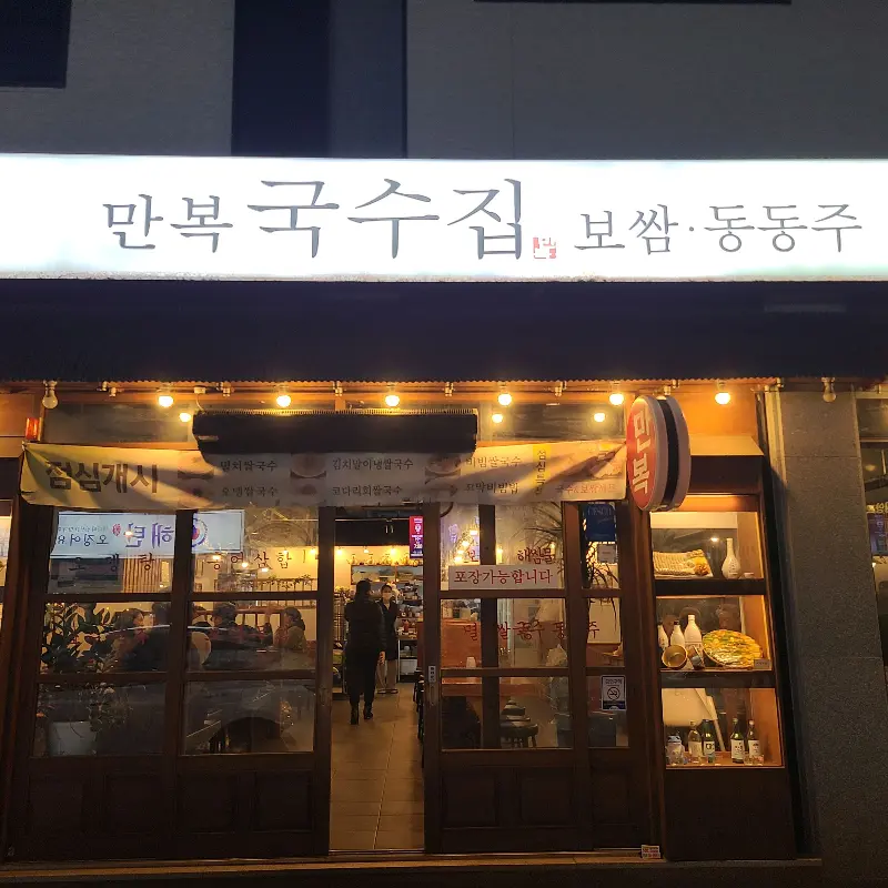 어스름한 저녁, 김해 율하의 거리를 걷는 발걸음은 설렘으로 가득 찼다. 오늘 향할 곳은 소박하지만 깊은 맛으로 입소문이 자자한 “만복국수집”. 왠지 모르게 정겨운 이름에 이끌려, 따뜻한 국물과 푸짐한 안주가 기다리는 그곳으로 향했다.