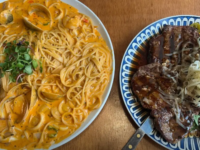 자리에 앉아 메뉴판을 펼쳐보니, 파스타 종류가 진짜 다양하더라고. 크림, 토마토, 오일, 로제… 결정 장애가 있는 나는 한참을 고민했지. 친구는 이미 몇 번 와봤다면서 자기가 알아서 시켜주겠다고 큰소리치더라. 뭐, 믿고 맡기는 수밖에! 잠시 후, 우리 테이블에는 먹음직스러운 파스타 두 접시와 사이드 메뉴 하나가 놓였어.