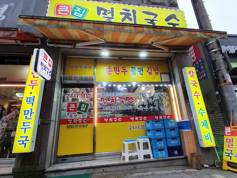 새솔동 라인에서 랩 하듯 달려 도착한 곳, 남양읍! 오늘 나의 레이더망에 포착된 곳은 바로 ‘큰집멸치국수’다. 간판부터 24시간 불이 활활 타오르는, 왠지 모르게 정겨운 아우라가 느껴지는 곳. 평소 국수 러버인 내가 그냥 지나칠 수 없지.