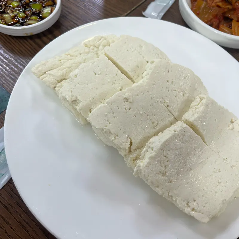 잠시 후, 기다리고 기다리던 손두부가 먼저 나왔다. 뽀얗고 네모반듯한 모습이 마치 예술 작품처럼 정갈했다. 젓가락으로 조심스럽게 한 조각을 집어 입으로 가져갔다. 입안에 넣는 순간, 놀라울 정도로 부드러운 질감과 함께 콩 특유의 고소한 풍미가 입안 가득 퍼져 나갔다. 시판 두부에서는 느낄 수 없는, 깊고 진한 맛이었다. 곁들여 나온 양념장에 살짝 찍어 먹으니, 짭짤하면서도 감칠맛이 더해져 풍미가 더욱 살아났다.