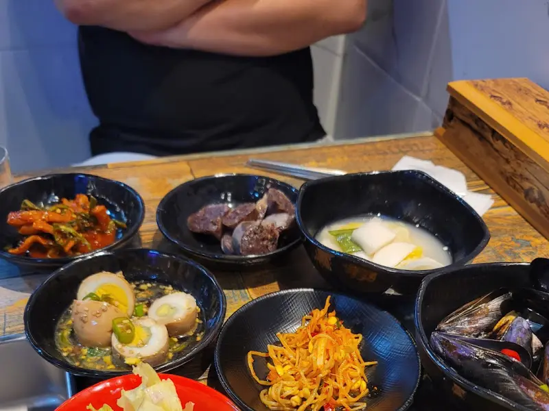 자리에 앉자마자 눈이 휘둥그레. 밑반찬 스케일, 장난 아니잖아! 갓김치, 꼬막, 묵은지, 샐러드… 끝도 없이 쏟아지는 반찬 퍼레이드에 정신 못 차리겠어. 특히 갓김치, 톡 쏘는 맛이 아주 일품! 메인 메뉴 나오기 전에 이미 젓가락질 멈출 수 없어.