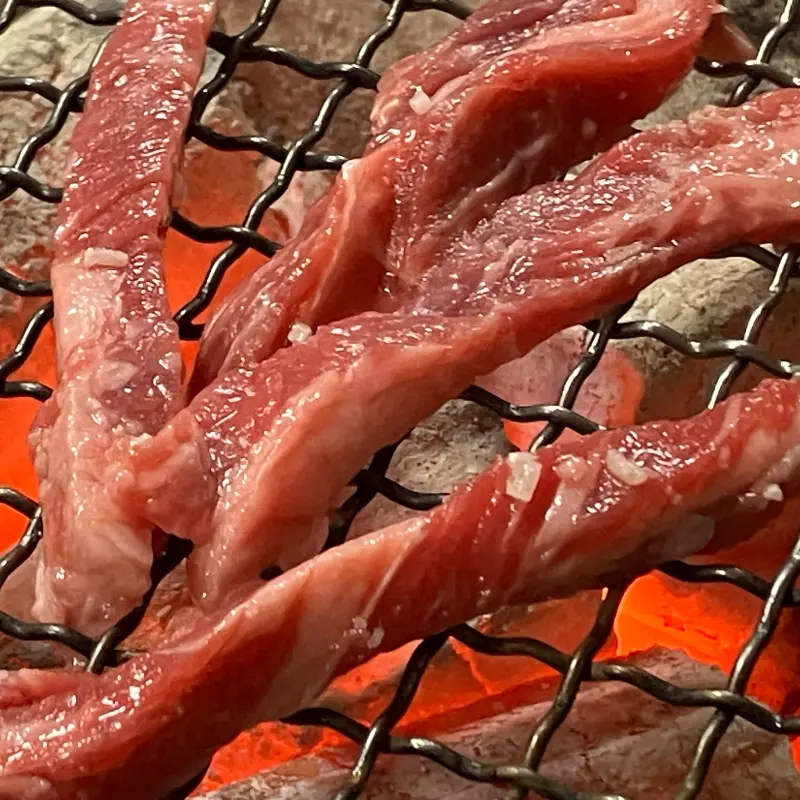 드디어 기다리고 기다리던 소갈비살이 나왔다. 붉은 빛깔의 신선한 고기가 보기만 해도 군침을 삼키게 했다. 숯불 위에 고기를 올리자, 치익- 하는 소리와 함께 맛있는 냄새가 코를 자극했다. 숯불의 화력이 워낙 좋아서, 금세 고기가 익어갔다. 잘 익은 고기 한 점을 집어 입에 넣으니, 입안 가득 육즙이 퍼져나갔다. 부드러운 식감과 고소한 맛이 환상적인 조화를 이루었다.
