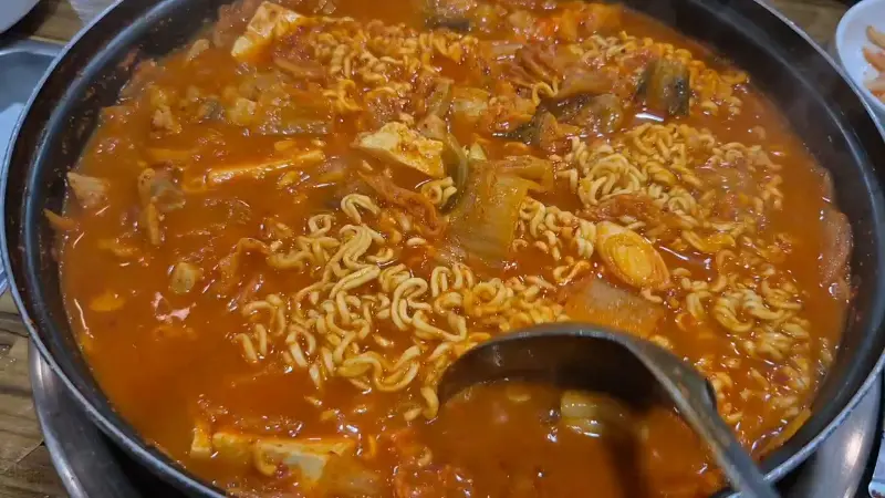 게다가 이곳은 밥과 라면사리가 무한리필이라는 엄청난 메리트가 있다. 탄수화물은 김치찌개의 매운맛을 중화시켜주고, 포만감을 높여 만족스러운 식사를 가능하게 한다. 특히 라면사리는 김치찌개 국물을 흡수하여 더욱 진한 풍미를 느낄 수 있게 해준다. 라면의 글루텐 성분이 국물과 어우러져 쫀득한 식감을 선사하는 것은 덤이다.
