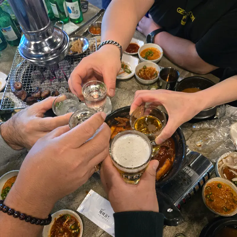 말똥구리막창에서 술잔을 기울이는 모습