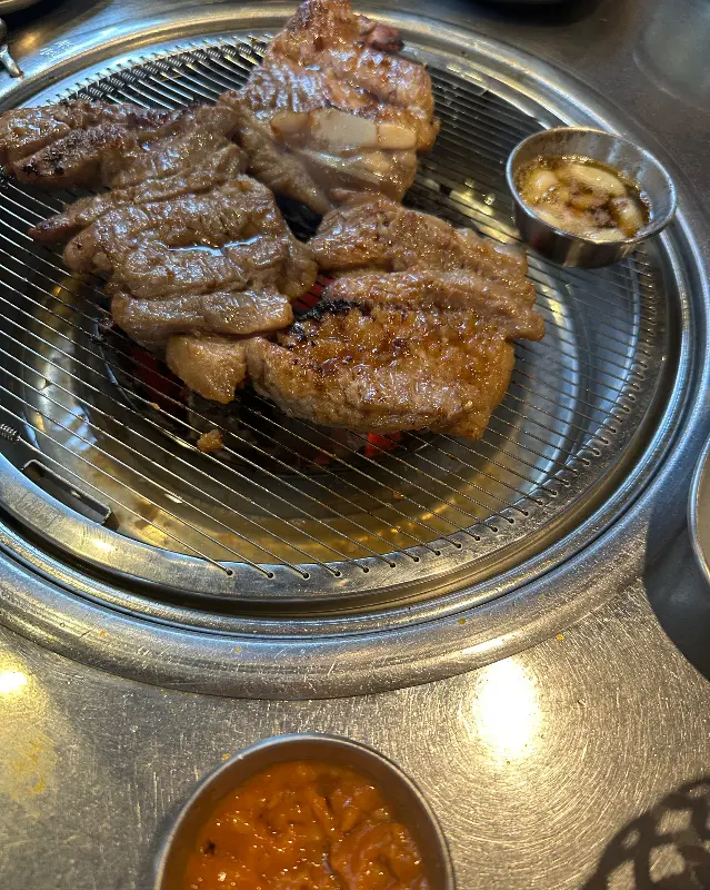 정신없이 먹다 보니, 어느새 테이블 위는 텅 비어 있었다. 3인분의 양념갈비와 김치찌개, 그리고 머슴밥까지, 우리는 그 모든 것을 깨끗하게 해치웠다. 배는 불렀지만, 속은 더부룩하지 않았다. 오히려 에너지가 넘치는 기분이었다. 처럼, 숯불 위에서 맛있게 구워지는 고기를 보니 다시금 식욕이 되살아나는 듯했다.