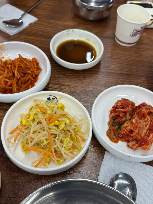 정갈하게 담겨 나온 콩나물 무침, 김치, 무생채 등 밑반찬