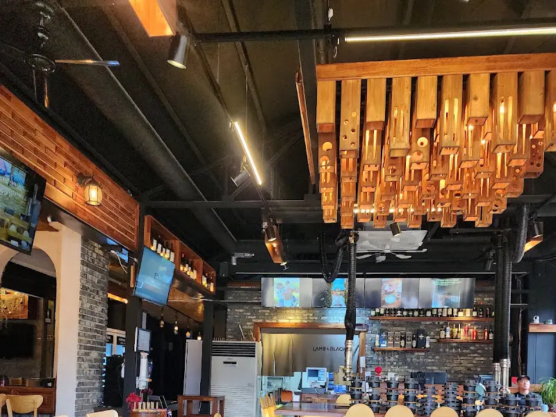 천장을 올려다보니, 나무 소재를 활용한 독특한 조형물이 시선을 강탈했다. 마치 악기 건반을 연상시키는 디자인이랄까? 은은하게 퍼지는 조명 빛이 실내를 아늑하게 감싸는 것이, 딱 내가 좋아하는 분위기였다. 벽돌로 마감된 벽면과 곳곳에 놓인 나무 가구들이 따뜻함을 더했다.
