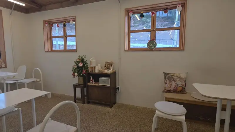 고민 끝에, “사장님, 여기 생딸기라떼랑 생딸기타르트 하나 주세요!” 주문 완료! 주문을 마치고 주변을 둘러보니, 카페 곳곳에 숨겨진 매력들이 눈에 들어왔어. 창밖으로 보이는 소노벨 옹벽 뷰는 덤! 뻥 뚫린 시야가 내 마음까지 시원하게 만들어주는 것 같았어.