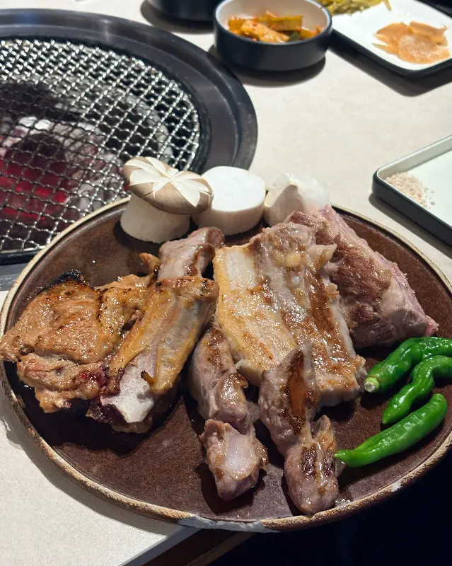 특히 돈짝갈비는 한정 판매라고 하니, 서둘러 방문해야 맛볼 수 있다는 점! 저는 운 좋게 맛볼 수 있었는데, 정말 후회 없는 선택이었어요. 숯불에 구우면 뼈에서 우러나오는 육즙이 고기에 스며들어 더욱 깊은 풍미를 느낄 수 있습니다. 이건 정말 꼭 먹어봐야 해요!