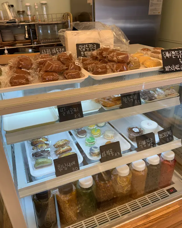* 메뉴: 두바이 쫀득 쿠키, 커피, 라떼, 샌드위치, 마카롱, 에이드, 유부초밥, 소금빵 등 다양한 메뉴를 판매합니다. 특히 수제청으로 만든 음료는 신선하고 맛있다는 평이 많습니다.
