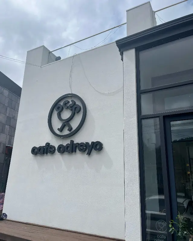 차가운 바람을 가르며 도착한 오드레요는 생각보다 훨씬 웅장하고 세련된 외관을 자랑하고 있었어. 하얀색 벽면에 검은색으로 포인트를 준 간판이 눈에 띄었는데, ‘cafe odreyo’라는 글씨체도 어찌나 예쁘던지. 마치 유럽의 어느 작은 마을에 온 듯한 기분이랄까? 문을 열고 들어서자 따뜻한 조명과 은은한 커피 향이 나를 반겨줬어.