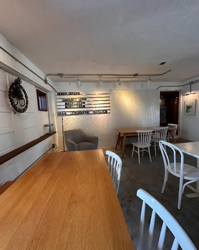 카페 내부는 화이트톤으로 깔끔하면서도 곳곳에 놓인 아기자기한 소품들이 눈길을 사로잡아. 사진 찍는 거 좋아하는 사람들은 무조건 와야 해. 어디서 찍어도 인생샷 각! 특히, 창가 자리는 경쟁이 치열하니까 오픈 시간 맞춰서 가는 걸 추천.