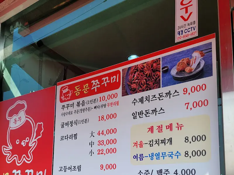 을 보면 가게 외관에 쭈꾸미 볶음과 함께 수제 치즈 돈까스가 소개되어 있는 것을 확인할 수 있다. 쭈꾸미 전문점이지만, 돈까스 또한 자신 있게 내세우는 메뉴인 듯했다. 실제로 많은 사람들이 쭈꾸미 볶음과 함께 돈까스를 주문하는 모습을 볼 수 있었다.