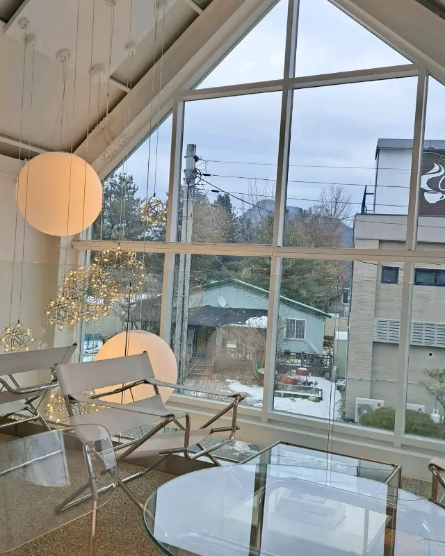 인테리어는 완전 내 스타일! 전체적으로 화이트와 실버톤으로 꾸며져 있었는데, 과하지 않으면서도 세련된 느낌이 물씬 풍겼다. 곳곳에 놓인 아기자기한 소품들도 눈길을 사로잡았고, 특히 테이블마다 놓인 작은 꽃병이 너무 예뻤다. 은은한 조명 덕분에 분위기가 더욱 아늑하게 느껴졌고, 사진 찍기에도 완벽한 공간이었다. 진짜, 셔터를 누르는 곳마다 인생샷 예약!
