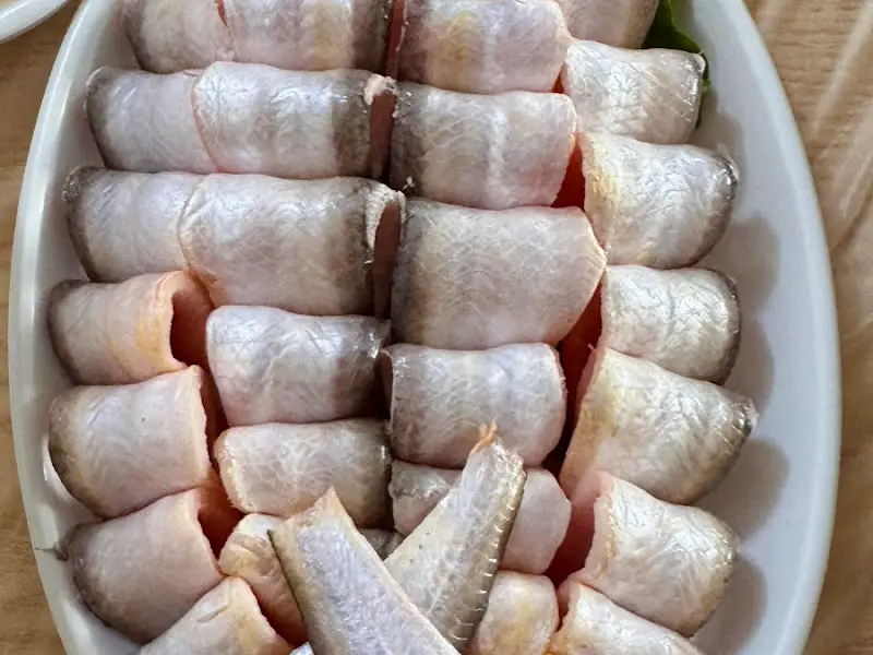 자리에 앉자마자 메뉴판을 펼쳐 들었다. 밴댕이회, 병어조림, 갈치조림, 우럭탕… 하나하나 눈길을 사로잡는 메뉴들 앞에서 고민에 빠졌다. 하지만 나의 선택은 단연 밴댕이회였다. 밴댕이의 신선함과 고소함을 제대로 느껴보고 싶었기 때문이다. 잠시 후, 테이블 위에는 푸짐한 한 상 차림이 펼쳐졌다. 밴댕이회는 물론, 다채로운 밑반찬들이 빈틈없이 자리를 채웠다. 보기만 해도 군침이 절로 도는 비주얼이었다.