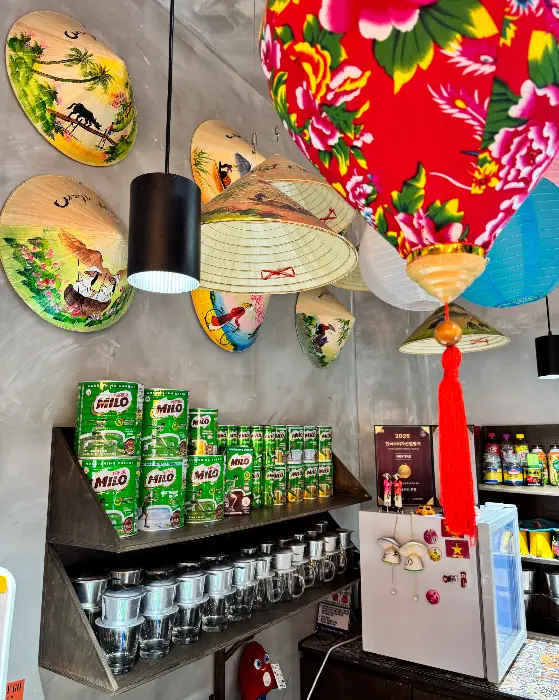 처음 방문한 곳이지만, 왠지 모르게 익숙하고 편안한 느낌이 들었다. 따뜻한 조명 아래 알록달록한 베트남 전통 모자와 등불들이 벽면을 장식하고 있었고, 의자마다 화려한 꽃무늬 쿠션이 놓여 있어 마치 동남아 어딘가로 여행 온 듯한 기분이었다. 이런 인테리어, 진짜 미쳤다! 테이블마다 놓인 작은 소품 하나하나에도 정성이 느껴졌고, 잔잔하게 흘러나오는 음악 소리는 이곳의 분위기를 더욱 특별하게 만들어주었다.