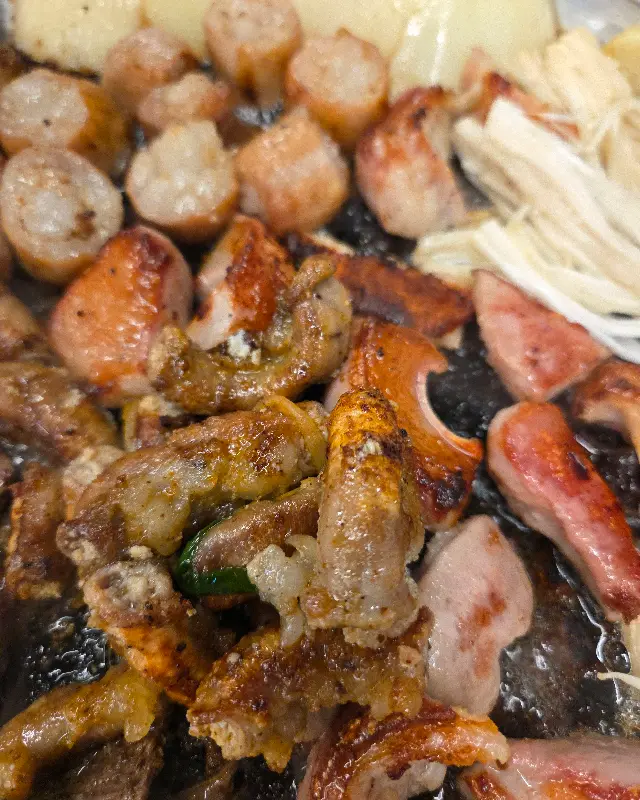 이어서 대창을 공략했습니다. 콜라겐 함량이 높은 대창은 씹을 때마다 쫀득한 식감을 선사합니다. 엘라스틴 섬유가 풍부하여 탄력 있는 질감을 자랑하죠. 고온에서 구워진 대창은 겉은 바삭하고 속은 녹진한, 그야말로 ‘겉바속촉’의 정수를 보여줍니다. 입술에 닿는 순간, 콜라겐 특유의 부드러움이 느껴졌습니다.