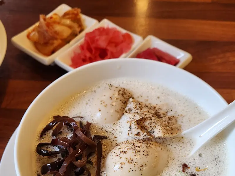 라멘과 함께 제공되는 곁들임 찬들도 훌륭했습니다. 특히, 직접 담근 듯한 김치는 라멘의 느끼함을 잡아주는 역할을 톡톡히 했습니다. 아삭한 식감과 매콤한 맛은 라멘의 풍미를 더욱 다채롭게 만들어주었습니다. 초생강은 입안을 깔끔하게 정리해주는 역할을 하여, 다음 젓가락질을 더욱 기대하게 만들었습니다.