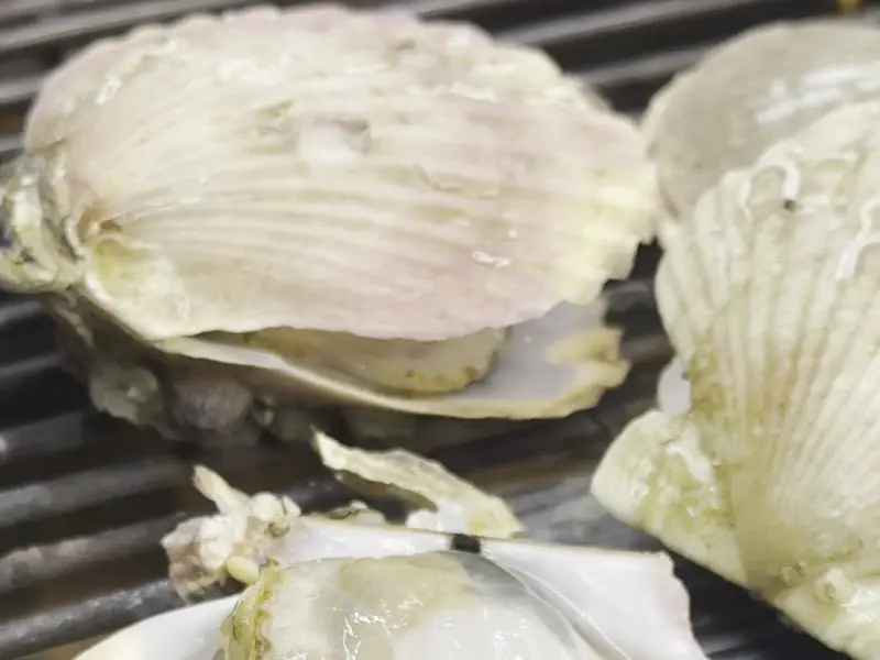 불판 위에서 익어가는 조개