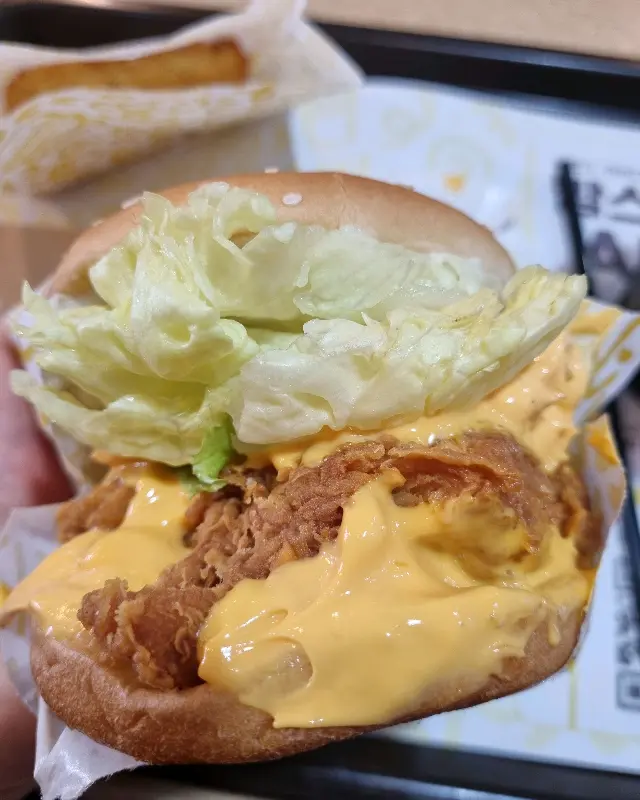 치킨 패티는 어찌나 촉촉한지, 입안에서 살살 녹는다는 표현이 딱 맞아. 겉은 바삭하고 속은 촉촉한, 완벽한 겉바속촉의 정석이야. 게다가 양배추도 아낌없이 넣어주셔서 아삭아삭 씹는 맛까지 더해지니, 이건 뭐, 진짜 레전드라고 할 수밖에.