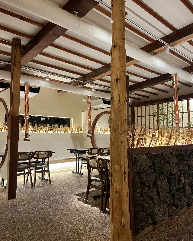 차가운 바람을 맞으며 도착한 “열흘”은 세련되고 따뜻한 분위기로 나를 맞이했다. 은은한 조명이 감도는 넓고 쾌적한 공간은 편안한 식사를 위한 최적의 환경을 제공했다. 나무를 활용한 인테리어는 제주도의 자연을 담아낸 듯했고, 테이블 간 간격도 넓어 다른 손님들의 방해 없이 오롯이 맛에 집중할 수 있었다.