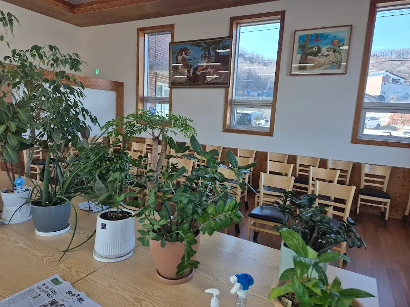문을 열자, 예상보다 넓고 밝은 공간이 펼쳐졌다. 통유리창 너머로 보이는 바깥 풍경은 평온한 농촌의 모습 그대로였다. 초록빛 논밭이 시야를 가득 채우고, 저 멀리 붉게 물들어가는 노을이 마음을 차분하게 가라앉혔다. 테이블 위에는 싱그러운 화분들이 놓여 있어, 마치 정원에 온 듯한 싱그러움을 더했다.
